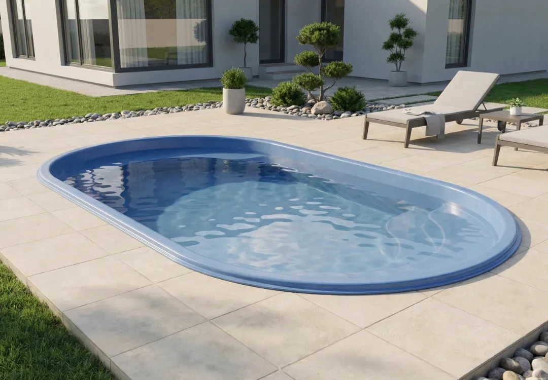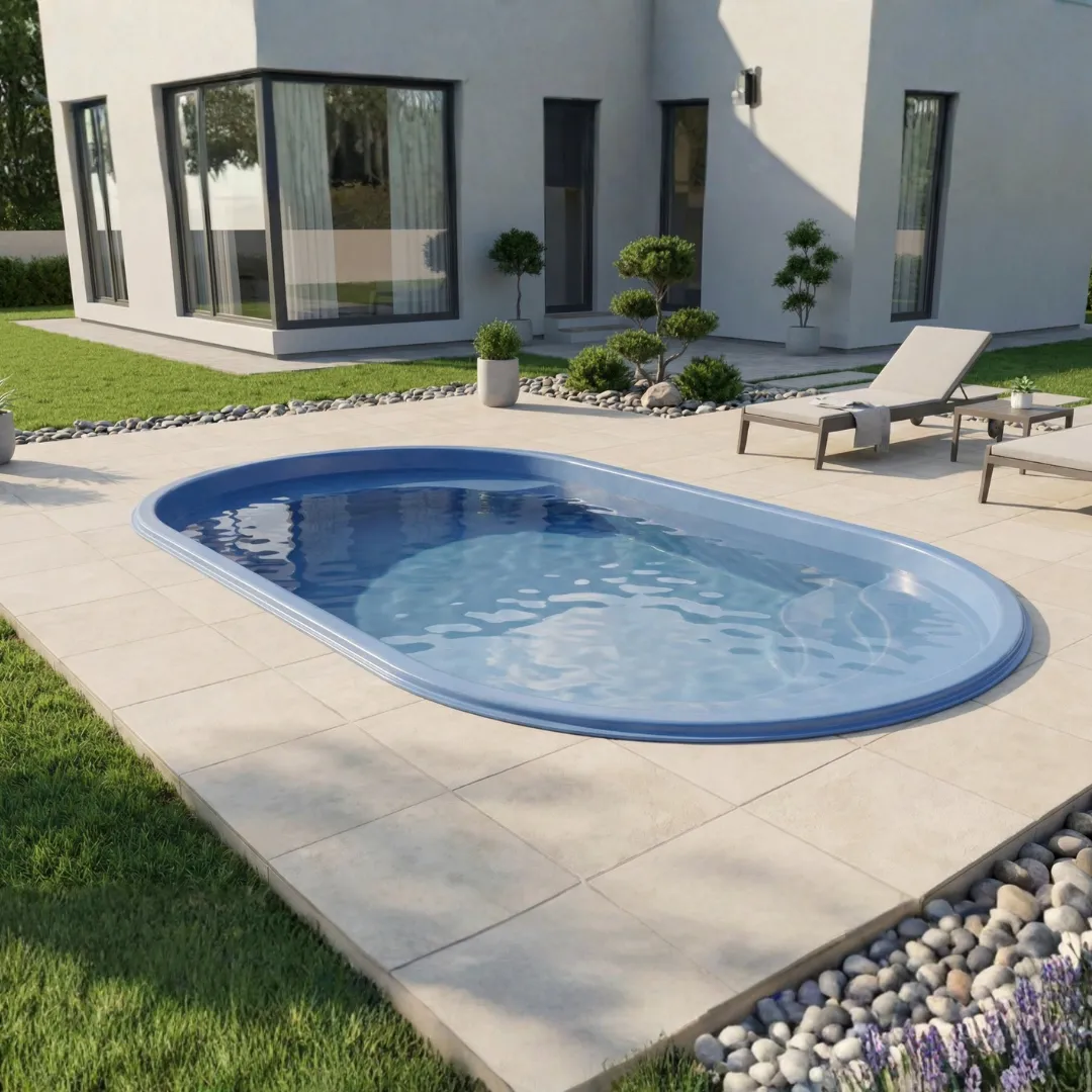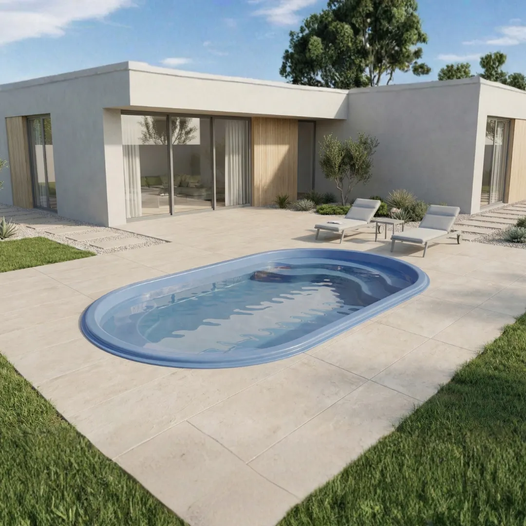 La Piscina Carmen es una piscina ovalada de fibra de vidrio ideal para familias y quintas. Fabricada con gelcoat resistente y refuerzos estructurales internos para mínima absorción y mantenimiento reducido.