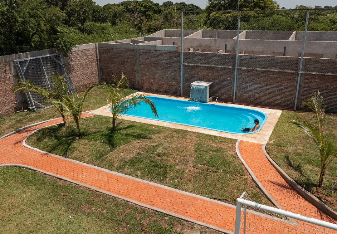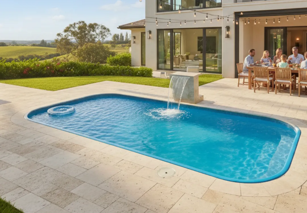 Piscina de Fibra de Vidrio: Fabricada con materiales de alta durabilidad.