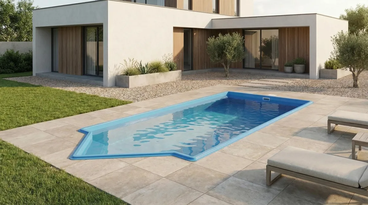 La Piscina Lorena combina estilo y funcionalidad. Ideal para hogares que buscan una piscina duradera, de bajo mantenimiento y alto impacto visual.