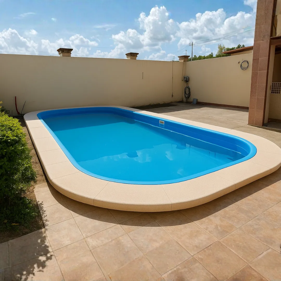 La Piscina Silvia es una piscina rectangular de fibra de vidrio ideal para familias y quintas. Fabricada con gelcoat resistente y refuerzos estructurales internos para mínima absorción y mantenimiento reducido.
